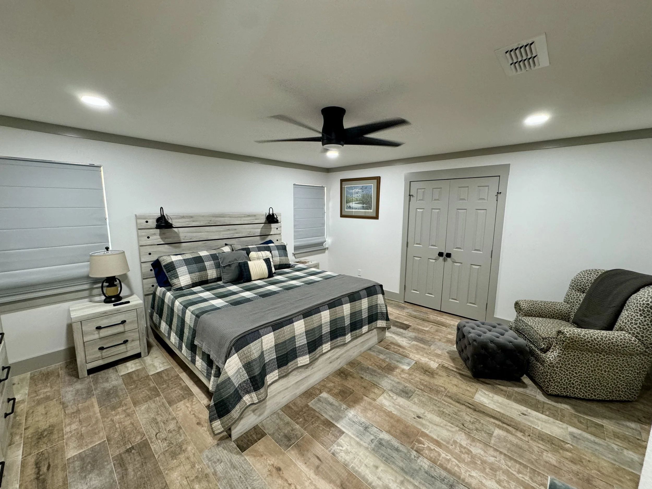Duck Lodge Renovation Completed in 2023 - $100 per person/Per Night - (Meals available upon request for an additional fee and with 72 hour advanced notice). 3BR, 3 1/2 BA - 2 Ensuite Private Bedrooms with King Beds, Spacious Bunk Room with Three Queen over Queen Adult Size Bunk Beds with stair access to top bunk, Bunk Room boasts of one Full and one 1/2 Bath, Laundry Room Access, Large Screen TV’s in all bedrooms and living areas. Fully furnished Kitchen, Wet Bar, and Outdoor patio/grill area. Pet’s are welcome. Pet Deposit required on a case by case basis. Contact ginam@klein-ranch.com for more information or to secure your lodge booking.